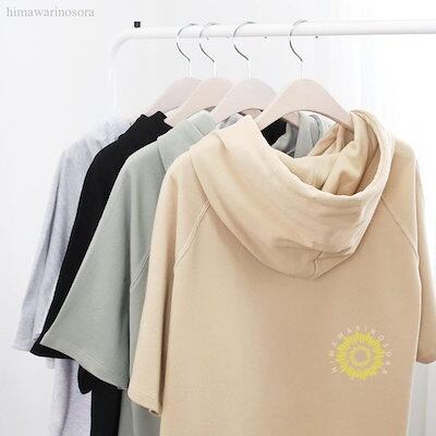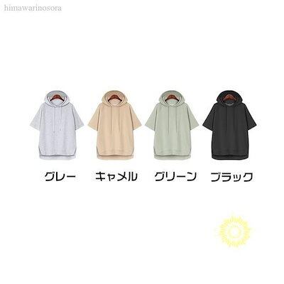 パーカー トップス レディース 夏 tシャツ 五分袖 フード付き ゆったり 半袖パーカー Tシャツ カットソー プルオーバー 高品質