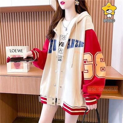 パーカーレディーストップス冬裏起毛厚防寒暖かい長袖配色数字柄ジップアップスウェットトレーナーアウタージップおしゃれカジュアル