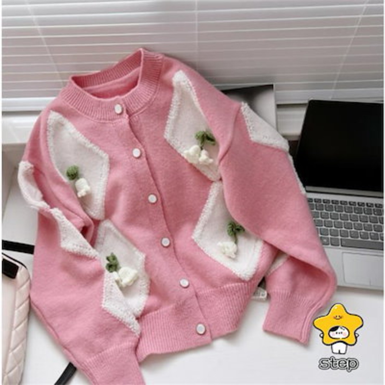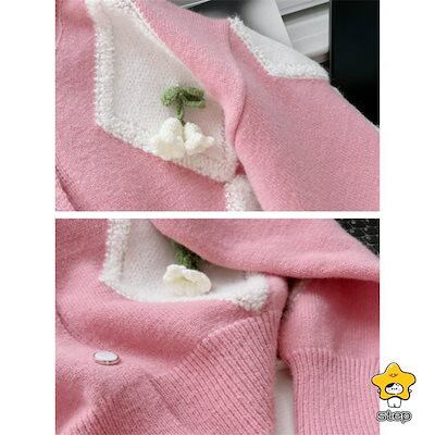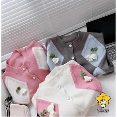 ニットセーターレディースきれいめ長袖ニットソー大人カジュアルおしゃれセーター花フラワーニットリブニットトップスボタン着やせ可愛い