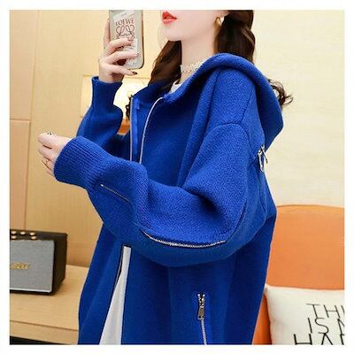 2022 新作 秋冬服 ジップアップ パーカー レディース 厚手 フード付き ニット カーディガン アウター 秋冬 春秋 お洒落 ミディアム丈 コート シンプル 無地 防寒コート 暖かい カジュアル