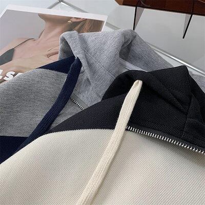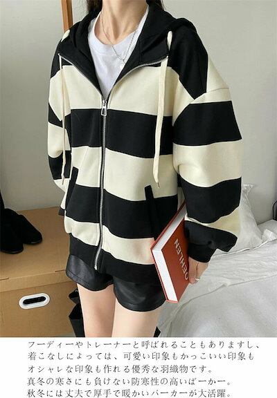 パーカー レディース ジップパーカー ジップアップ 厚手 ストライプ スウェットパーカー ロングパーカー 前ジップパーカー トップス アウター 女性 長袖 フード付き カジュアル 秋冬 春 おしゃれ