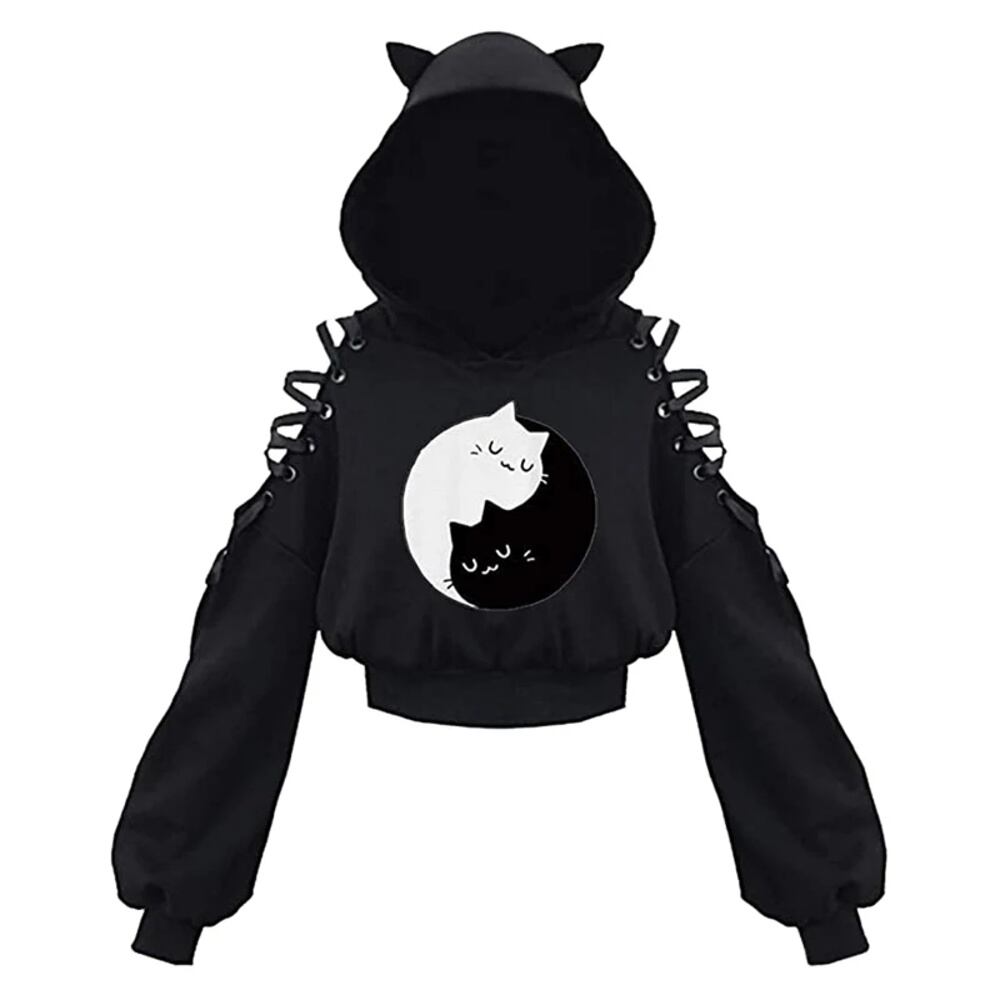 女性のゴシックキャットイヤーパーカー、長袖、フード付きスウェットシャツ、透かし彫り、レースアップ、フード付き、カジュアルプルオーバー、秋、y2k パーカー ジャージ y2k T240908200242_01