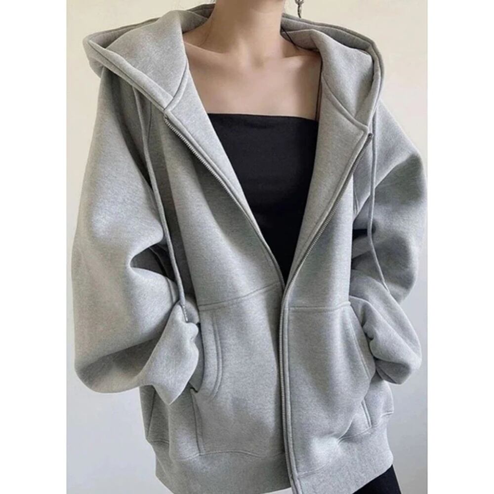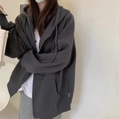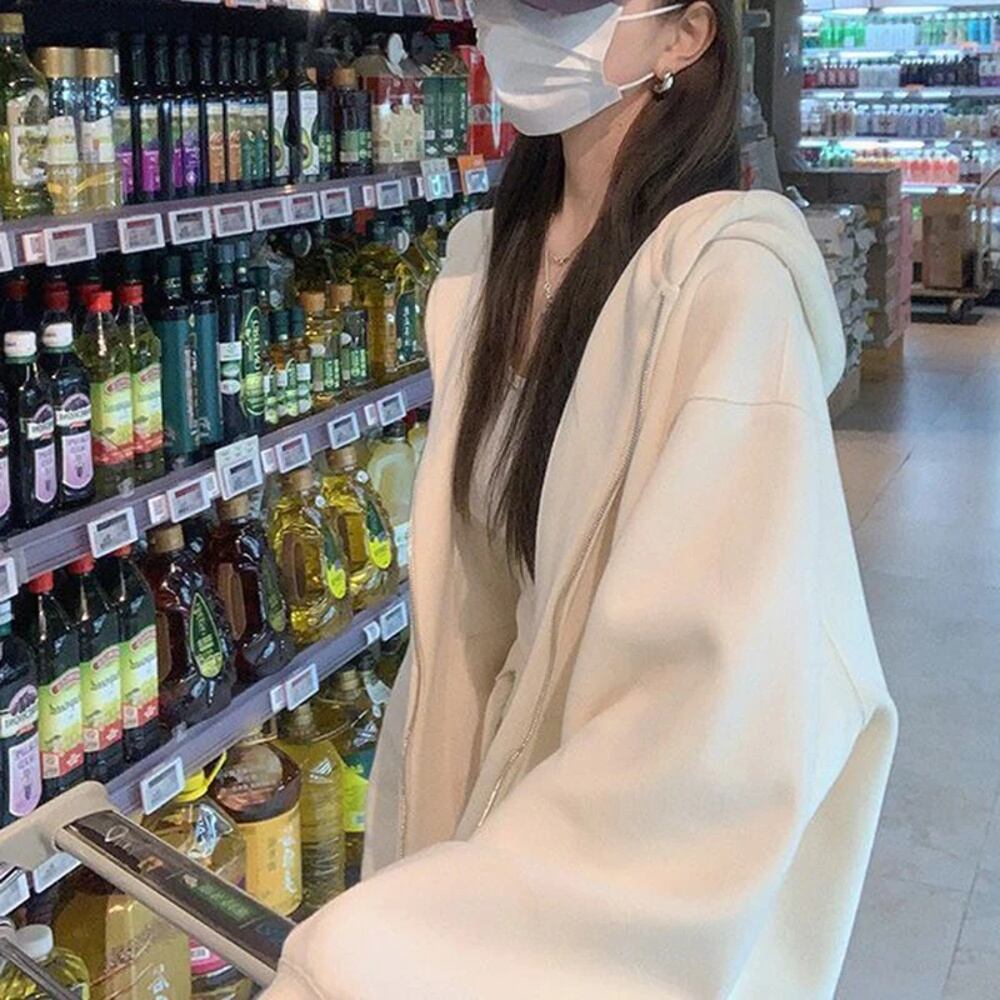 女性用ジッパー付き長袖スウェットシャツ,フード付きスウェットシャツ,コットン,ルーズ,モノクロ,スポーツ,原宿,女性用ジャケット,韓国アウター,y2kファッション パーカー ジャージ y2k T240908200422_01
