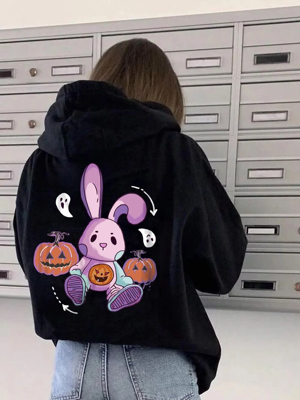女性用ハロウィン邪悪なカボチャバニープリントトップス、y2kパーカー、長袖スウェットシャツ、ジッパーなしパーカー、jujutsu kaisen パーカー ジャージ y2k T240908200432_01