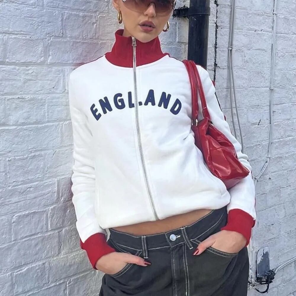女性用ジッパージャケット、y2kハイストリートコート、クロップトップ、ヴィンテージフーディー、カジュアルスウェットシャツ、ハイカラー、england、レタープリント、秋、2023 パーカー ジャージ y2k T240908200444_01