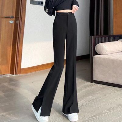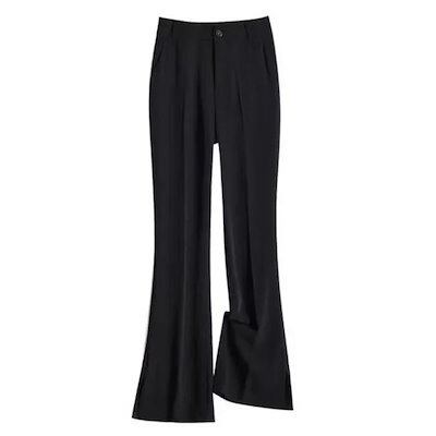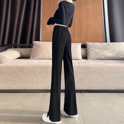 スリット 選べる3タイプ着丈 レディース フレア パンツ ハイウエスト スラックス