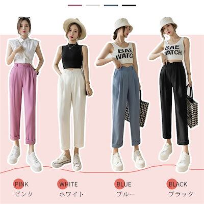 パンツ ボトム カラー レディース テーパードパンツ スラックス タックパンツ 通勤