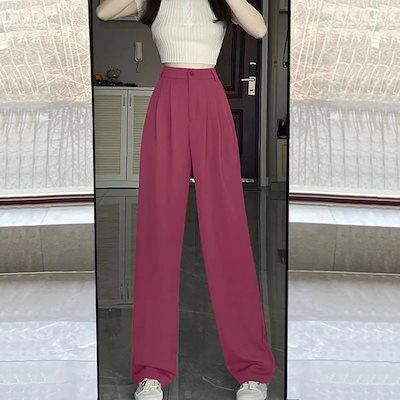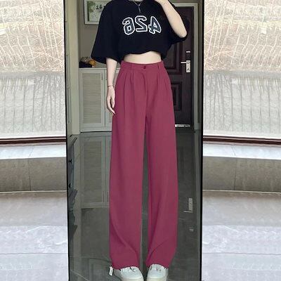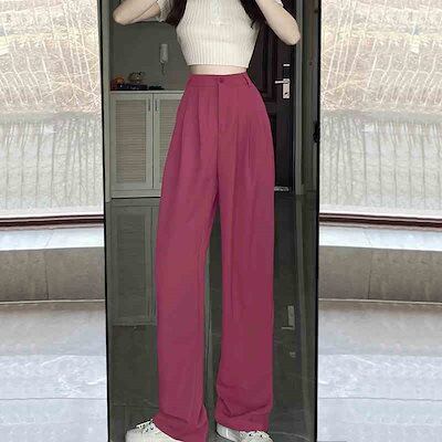 韓国ファッション 快適性スーツスラックス レトロレディーストレートパンツ 着痩せ気質ハイウエストパンツ
