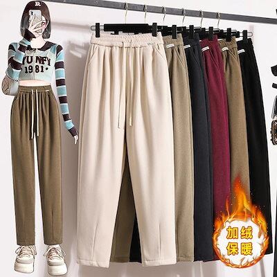今年も人気秋冬新型厚手フリース裏起毛レディースハーレムパンツ 大きいサイズ 百掛けスラックスパンツ