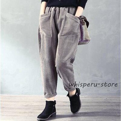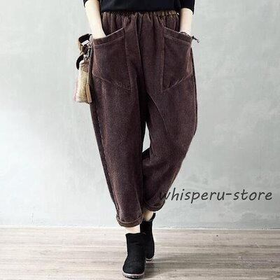 テーパードパンツ コーデュロイパンツ レディース 裏起毛 暖かい 秋 冬 サルエルパンツ ハイウエスト コーデュロイ パンツ ゆったり