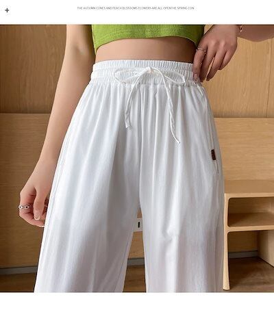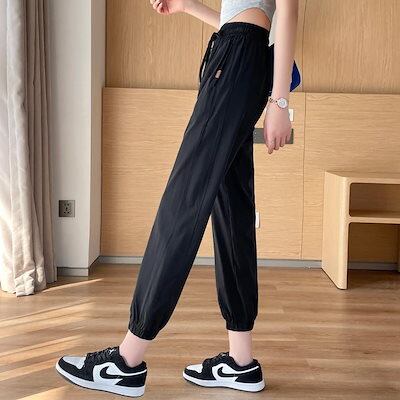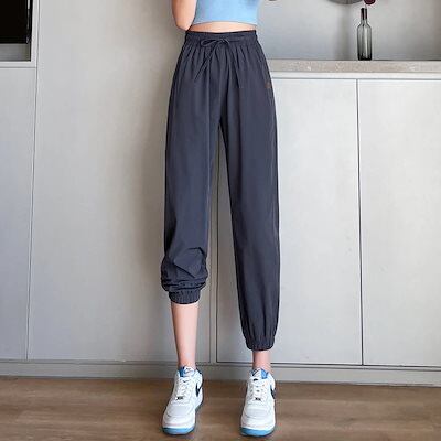 接触冷感ボトムス スラックスパンツ アイスシルク速乾スポーツパンツレディース夏ゆったりレッグタイ薄手カジュアルパンツ小学生9点パンツ 韓国ファッション