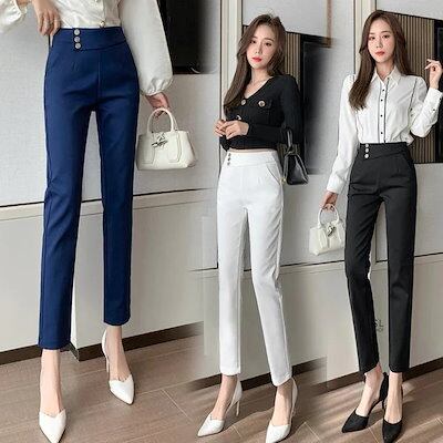 パンツ レディース スラックス L ビジネス 仕事 テーパードパンツ ズボン ボトムス 9分丈 2
