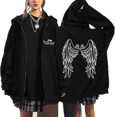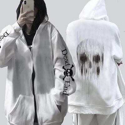 バックプリント ジップパーカー メンズ ジップアップ パーカー 長袖 カジュアル おしゃれ スウェット アウター フード付き 大きいサイズ 秋服 レディース 男女兼用 サブカルプリント おしゃれ ヒッ