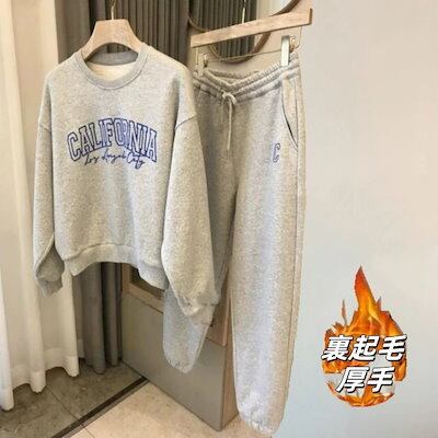 2枚購入で 2oo円FF!24新作 シンプル スウエット 裏起毛 セットアップ レディース レディースファッション 丸ネック Tシャツ トップス ワイドパンツ 二点セット 大きめサイズ