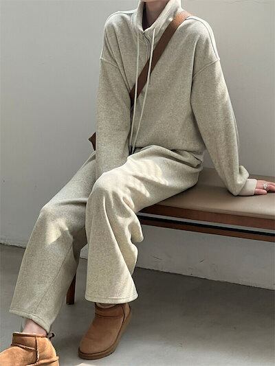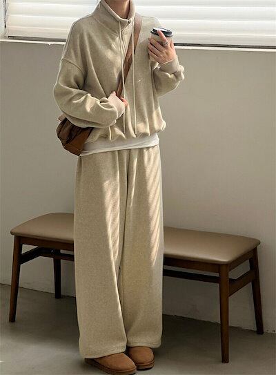 スウェットセットアップ レディース 秋 冬 長袖 キレイめ 上下セット 裏起毛 スウェットパンツ 2点セット 厚手 立ち襟 暖か 着痩せ 大人 カジュアル ボトムス トレーナー トップス ロングパンツ