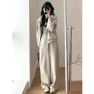 2枚購入で 2oo円FF!新作 カジュアル セットアップ レディース 裏起毛 厚手 運動 パーカー スウェット ワイドパンツ 二点セット 着痩せ 大きいサイズ 裏起毛ファッション