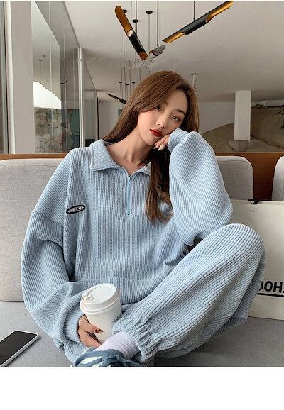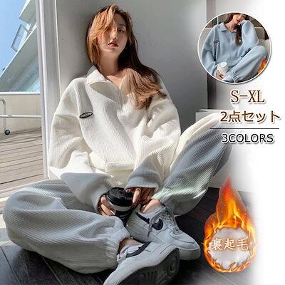 24新作 カジュアル セットアップ レディース 裏起毛 厚手 パーカー スウェット 運動 ワイドパンツ 二点セット 着痩せ 大きいサイズ 裏起毛ファッション5