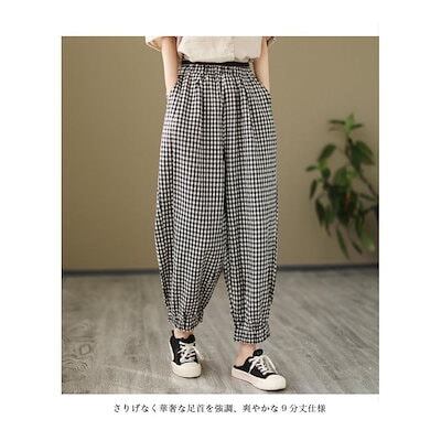 大人気 上品 バルーンパンツ ギンガムチェック サルエルパンツ 九分丈 レディース バギーパンツ 薄手 サマーパンツ ゆったり 体型カバー 夏 ウエストゴム 春