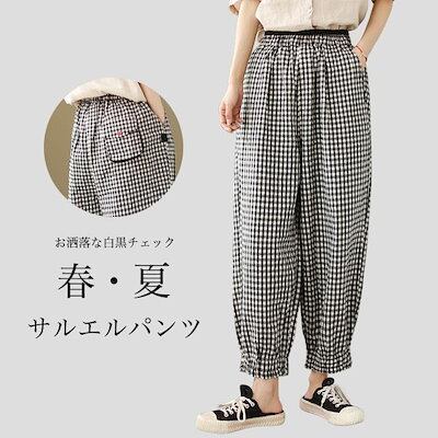 新作登場 バルーンパンツ ギンガムチェック サルエルパンツ 九分丈 レディース バギーパンツ 薄手 サマーパンツ ゆったり 体型カバー 夏 ウエストゴム 春