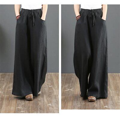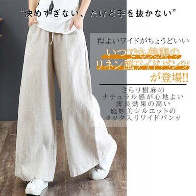大人の魅力 ワイドパンツ レディース チノパン リネン バギーパンツ ガウチョパンツ ズボン ロング ワイドパンツルック 綿麻 大きいサイズ リラックス 美脚