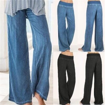 パンツ デニム レディース 秋 ボトムス コットン100% ウエストゴム ゆったり ジーンズ ズボン ジーパン ガウチョパンツ ワイド バギーパンツ