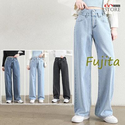 バギーパンツ ジーンズ レディース 九分丈/ロング丈 ワイドパンツ デニムパンツ ウォッシュ ヴィンテージ 春夏