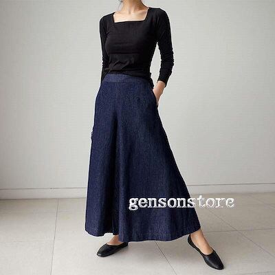 デニムバギーパンツ ボトム 春夏 ゆったり ボリューム ワイド 大きいサイズ レディース スカーチョ ウエストゴム ジーンズ ジーパン おしゃれ カジュアル 上品