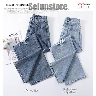 バギーパンツ ワイドパンツ ジーンズ ロング丈 デニムパンツ レディース ダメージ加工 ウォッシュ ク 春夏