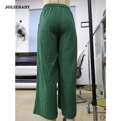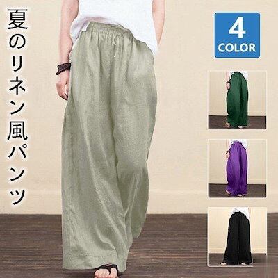 ワイドパンツレディースバギーパンツパンツワイドガウチョレディース大人リネン風ボトムスロングパンツルームウェアウエストゴム
