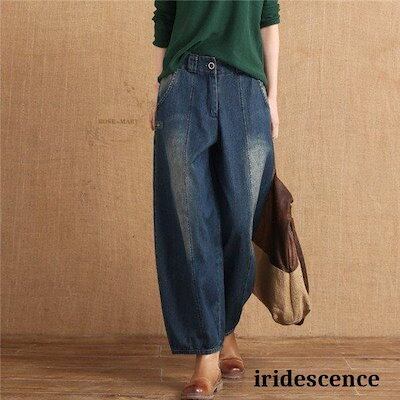 ジーンズ レディース デニムパンツ ガウチョパンツ ワイドパンツ ロング ウェスト バギーパンツ 大きい ゆったり お洒落