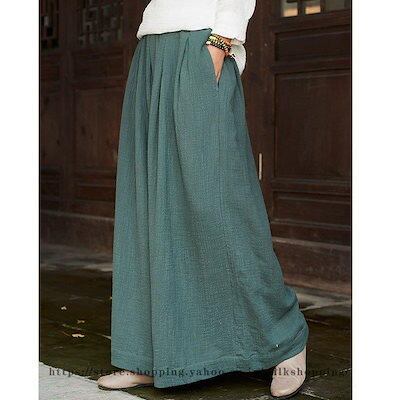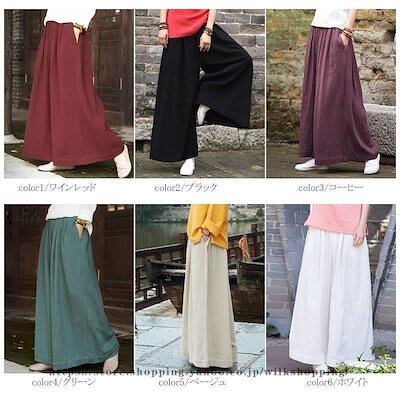 パンツ サルエルパンツ ガウチョパンツ ヨガパンツ バギーパンツ レディース ロング丈 ウエストゴム ポケット付き 無地 リネン ゆったり