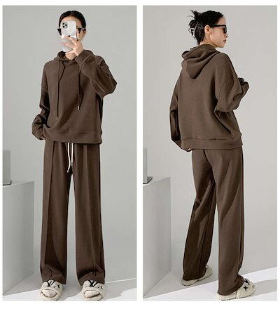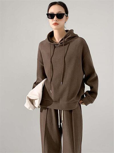 セットアップ パーカー スウェット トレーナー 上下セット 裏起毛 ジャージ レディース 春 秋 冬 無地 ワイドパンツ 楽ちん フード付き ロングパンツ ポケット付 シンプル 長袖 スエット スポー