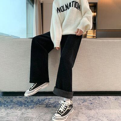 ワイドパンツ 裏起毛 秋冬 ガウチョパンツ 女の子 ボア素材 スウェット素材 レディース 美脚 暖かパンツ ロングパンツ リブ スカーチョ 暖かい かわいい ウエストゴム ストレートパンツ ズボン ボ