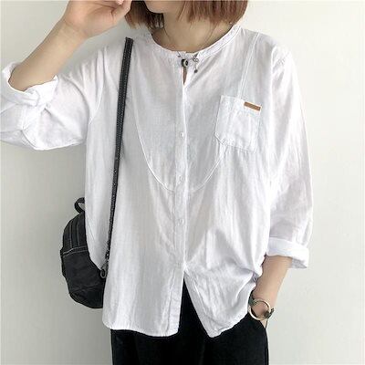シャツ レディース ブラウス 春 夏 秋 40代 リネンシャツ パーカー ガーゼ 長袖 シャツブラウス 綿麻トップス 着心地 大人 ゆったり 体型カバー