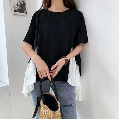 Tシャツ レディース チュニック レイヤード風 フリル おしゃれ シャツブラウス プルオーバー トッ