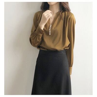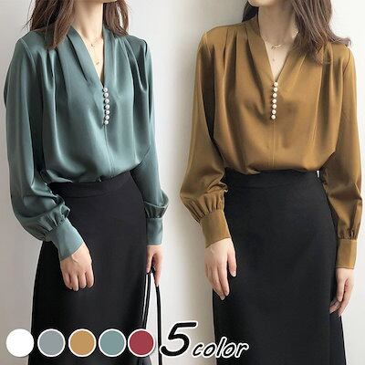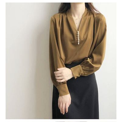 ブラウス レディース きれいめ 40代 春夏秋新作 オシャレブラウス 白シャツ シルク風 長袖トップ