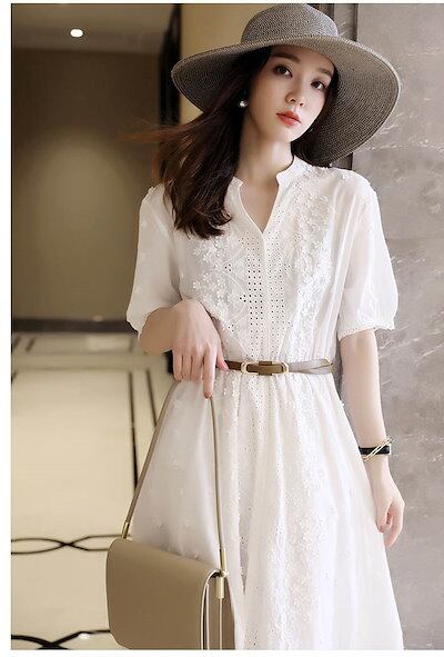 ワンピース レディース レース ワンピ 半袖 Aライン フレアワンピース ミモレ丈 キレイめ 膝丈 白ワンピース vネック 可愛い ゆったり シンプル カジュアル 着痩せ お洒落 フォーマル エレガン