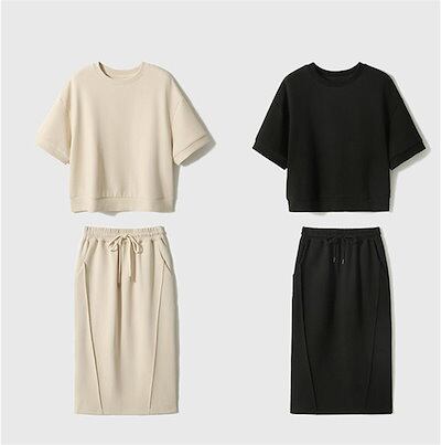 セットアップ レディース カジュアル 春 夏 大きいサイズ トップス ブラウス スカート スカートセットアップ 上下セット tシャツ 無地 ゆったり リラックス 半袖 シンプル スポーティ 柔らか 日
