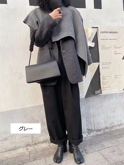 ポンチョ ニットベスト ニット セーター レディース ベスト ニット トップス 半袖 無地 ハイネック ベスト ノースリーブ タートルネック アシンメトリー 変形 アシメ レイヤード ケーブル編み