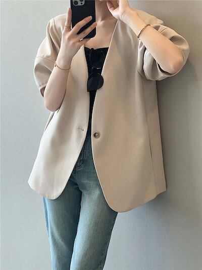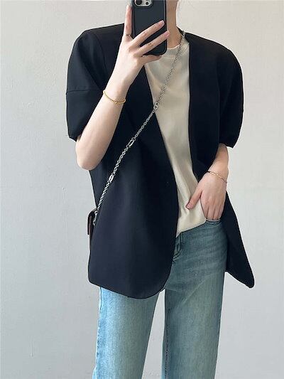 テーラードジャケット 春 夏 レディース テーラード 半袖 パフスリーブ 半袖ジャケット 羽織り はおり 上着 ノーカラー トップス おしゃれ ファッション 楽ちん 上品 きれいめ スッキリ カジュア
