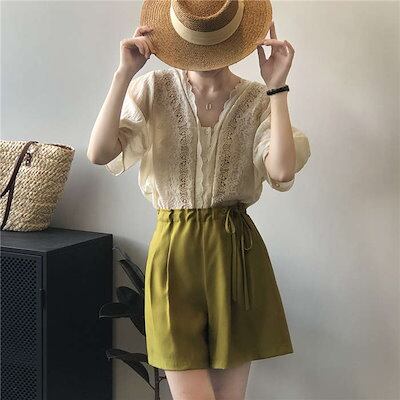 レースブラウス 半袖 フォーマル 大きいサイズ 刺繍レースブラウス レディース 夏 Vネック フリル 透かし編み パフスリーブ オフィス ゆったり オシャレ 上品 可愛い 大人 30代 50代 送料無