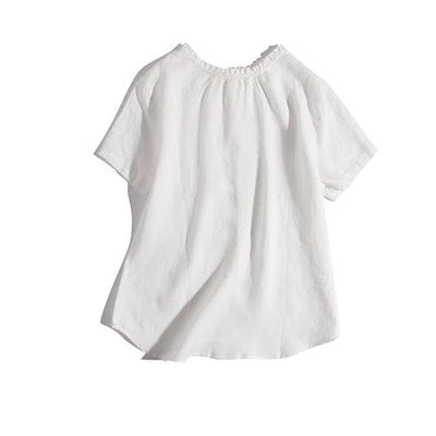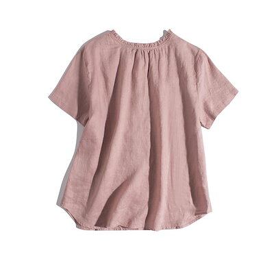リネンシャツ 半袖 レディース 麻100% リネン100% ブラウス 前後2way 夏 無地 立ち襟 フリル襟 涼しい シンプル 5色 ボダンシャツ 上品 春夏 春 夏 通勤 ベーシック 大人可愛い