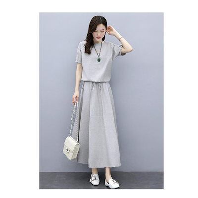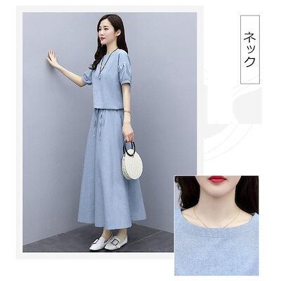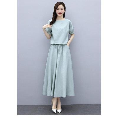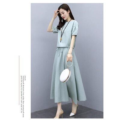 セットアップ レディース 40代 春夏 半袖トップス ロングスカート セットアップ 綿麻 2点セット カジュアル オシャレ 韓国風 着痩せ 大人 新作