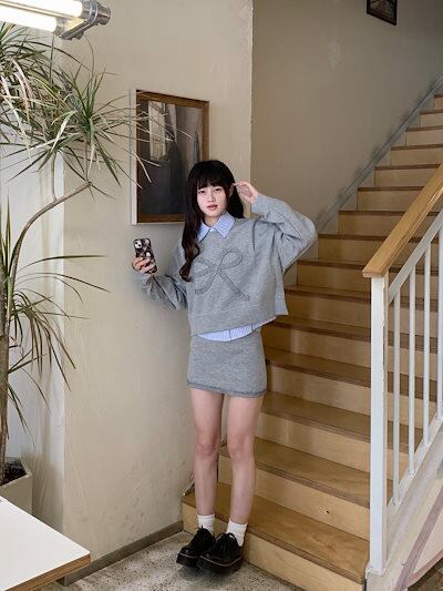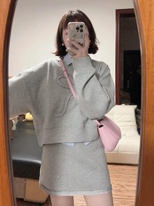 2024秋冬トップス ラウンドネック レイヤード風 重ね着 長袖 ゆったり 秋コーデ _ おしゃれ かわいい ラブリー キュート 韓国ファッション オフ レディース お出かけ 2点