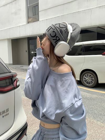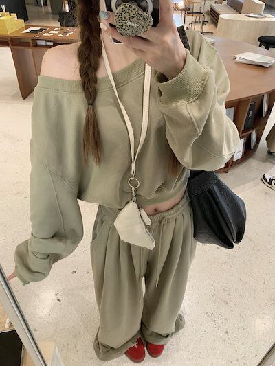 2024 秋冬 トップス 長袖トレーナーかわいいラウンドネックTシャツ肌見せレディース ストレート 韓国風ルーズゆったりカジュアル おしゃれサイズ シルエットファッション系コーデ衣装丈上下セットアップ