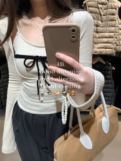 2024春夏 甘く ツーピース トップス レイヤード風 tシャツ 重ね着風 カットソー 長袖 インナー ショート タイト フィット T カジュアル きれいめ フェミニンフレンチモックネック