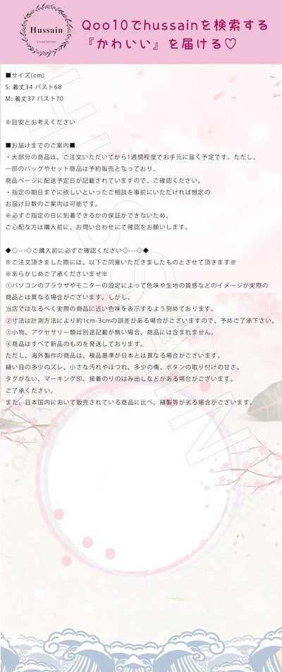 サイズ交換、お色交換などの返品、交換は行っておりませんので十分にお確かめの上、ご購入お願い致します。