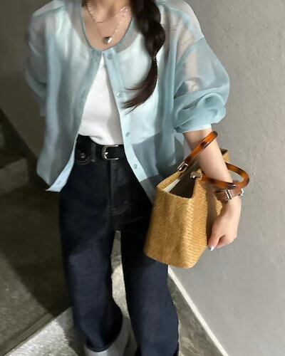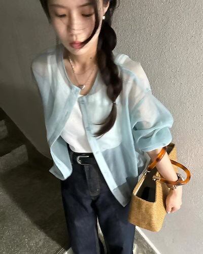 2024 秋冬トップス カーディガン 羽織り 薄手 シースルー 長袖 ボタン ラウンドネック 秋 水色 青 黒 白 おしゃれ かわいい 韓国ファッション レディース お出かけ