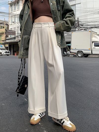 2024 春秋パンツ ロング丈 ワイド ストレート ハイウエスト 美脚効果 脚長効果 細見え 秋 黒 白 緑 おしゃれ かわいい 韓国ファッション レディース お出かけ