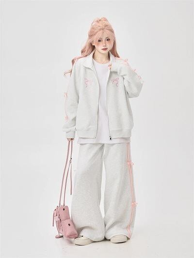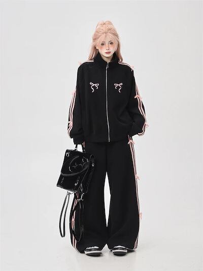 2024 春秋 2点セット トップス お出かけ 羽織り 韓国 レディース フルラウンドヘム ルーズ サイド ボトムス ストレート系冬 ゆったり サイズワイドシルエット上下リラックストラック
